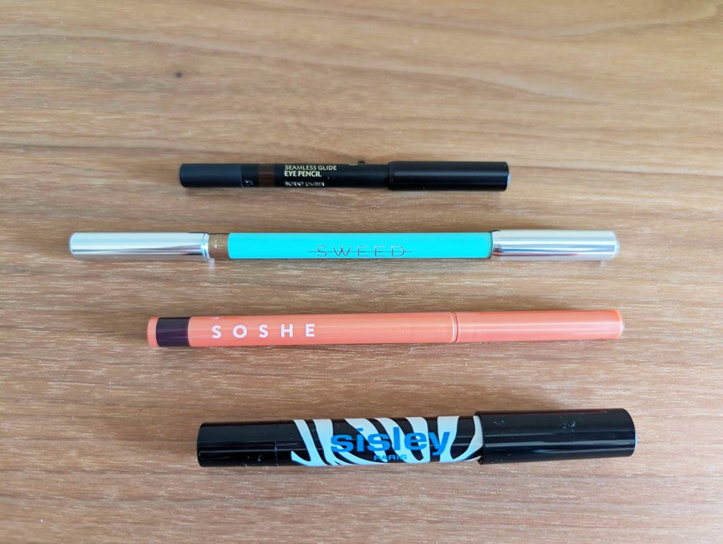 I have four eyeliners. Lisa Eldridge in Burnt Umber, which is priority to use up this year as it is getting older. I got three new ones in the shades I thought were interesting. Sweed in Golden Beetle, Soshe in Nights in Bordeaux (plum shade) and Sisley eye twist in the shade Copper. I like all of these, they perform really well and I can see myself using them up along the way.