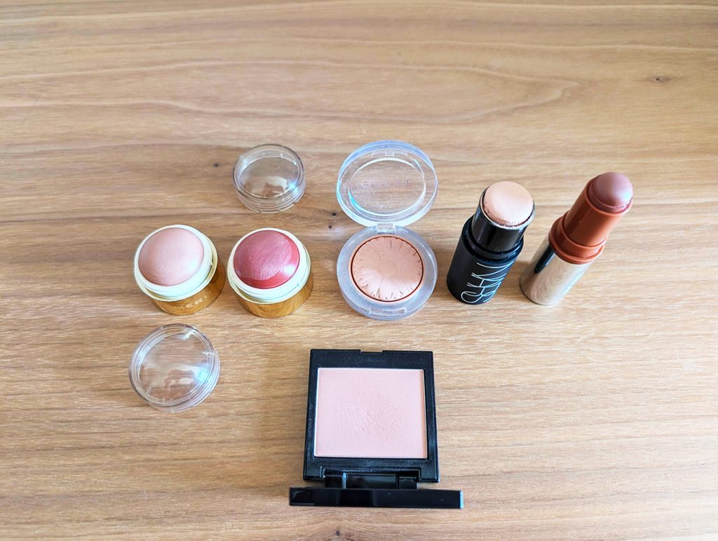 Finally, I have two Hourglass palettes. One on the older side is Edit vol 4 and the other one is a new custom quad from the last year. I use the old ones for the finishing powders, bronzer and a highlighter. I don’t use much of those blushes. The new one is nice but I am prioritizing the old one for now to get the most out of it.