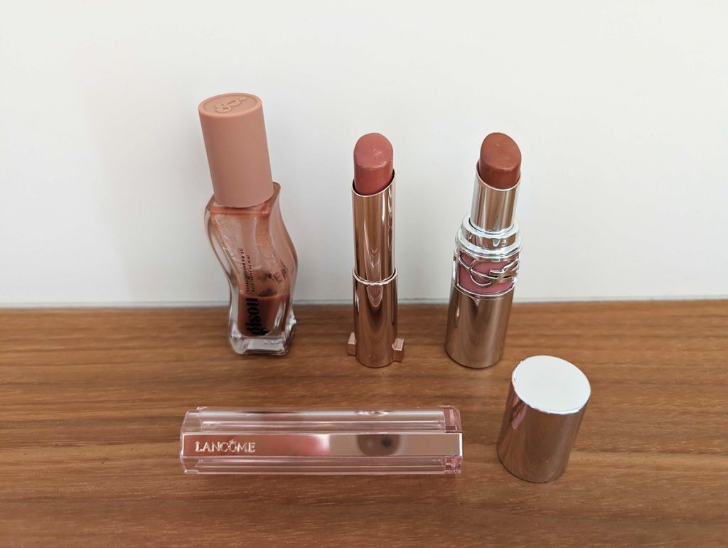 As for my lipgloss and lipbalm collection, I have three at the moment. Gisou honey infused hydrating lip oil in the shade Sticky Toffee. As you can see, it is well loved and it wil probably be my first empty this year. I have Lancome Butterglow hydrating lip balm in the shade Throwing beige. Really enjoying it. The last one is YSL lip oil stick in the shade 204 Melted honey. I am not sure about the scent of that one, but I do love the color on me.