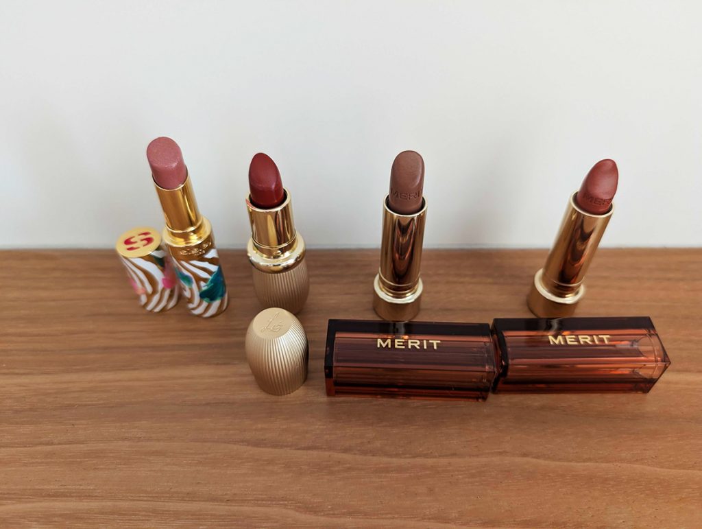 I have four lipsticks. After enjoying Merit Ginger for a long time, I got a new one in the shade Slip. It is more brown that I have expected, but I love mixing it with Ginger. The formula is really beautiful. I also got Sisley Phyto rouge shine lipstick in the shade 10 Sheer nude. It is sheer and very pretty on the lips. The last one is Lisa Eldridge Rouge experience in the shade Lili. I have this one and a backup of it, so I keep it at our other place, since the component is not really sturdy enough to travel with. Shade is beautiful, especially if you are a soft autumn like me.